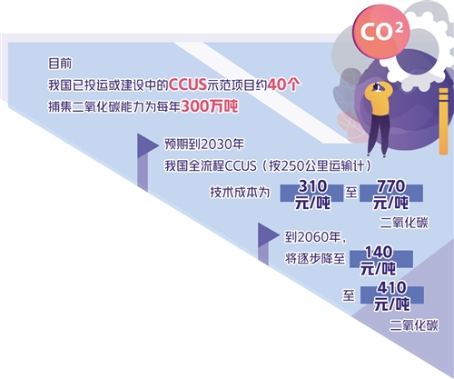 “相比国外,我国的CCUS项目起步较晚,而且项目运行成本太高,经济性不明确。”中国国际工程咨询有限公司高级工程师张建红说。有研究测算,不包括运输和封存成本,国外捕集二氧化碳的成本约为11美元/吨至57美元/吨,而我国当前的低浓度二氧化碳捕集成本为300元/吨至900元/吨。联合国政府间气候变化专门委员会的研究报告认为,只有当捕集和封存二氧化碳的总成本降到25美元/吨至30美元/吨时,CCUS技术才可能被大规模推广。