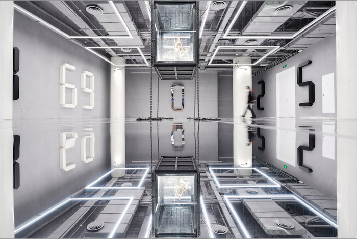 在此次展览中,作品《本生》以船为对象,表达风暴中的小船在时间的不断循环后依然跃于海平面上,每一次都代表着一次新生;作品《定数》则以数字表达时间。时间与空间在此处被一次次连结,艺术家在这个繁杂且严谨的结构中将一种对于时代进程的美好愿景漫不经心的描述出来,最终指向有关生命问题的永恒讨论。对于生命,每个人都会有自己的见解,每个人都会拥有自己的定数。艺术家将他辩证的思索呈现在镜面之中,以一种感知的传递,缓慢而又湍急的侵入客观世界。(文/黄松)