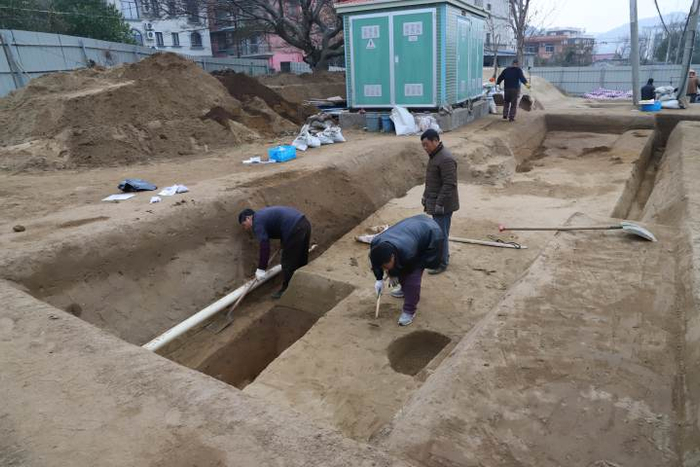 目前清理不同历史时期遗迹百余处,包括房址1座、墓葬24座、水井16座、灰坑74座、灰沟15条、灶3处以及大量分布的柱洞群。出土遗物500余件,主要为陶瓷器,辅以少量铜铁器和石器等。