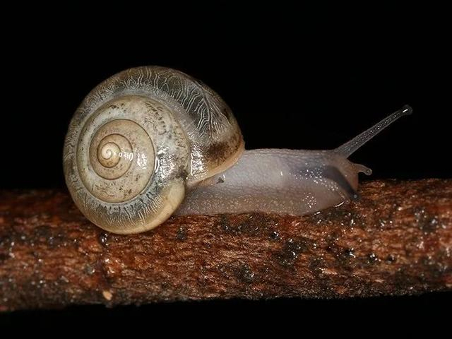最常见的带壳蜗牛,雨后地面、墙壁、植物上都能见到它们的踪影。