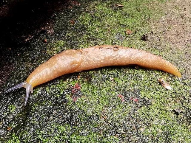 最常见的无壳蜗牛,俗称鼻涕虫,可以说到处能见到,特别是雨后。