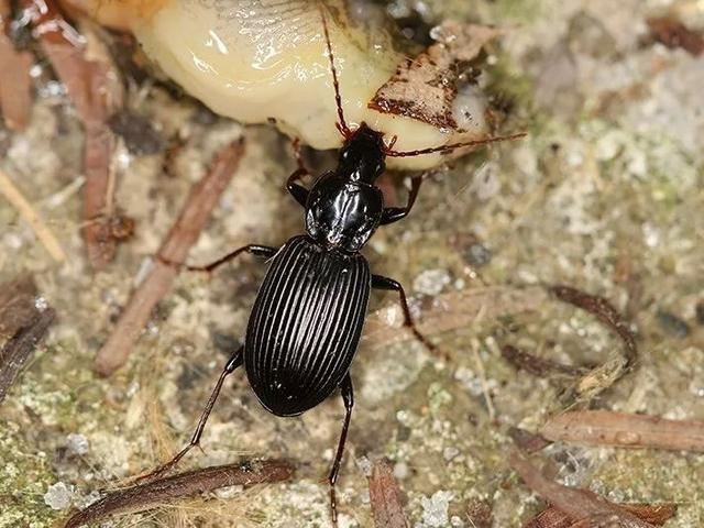 一只步甲正在捕食蛞蝓