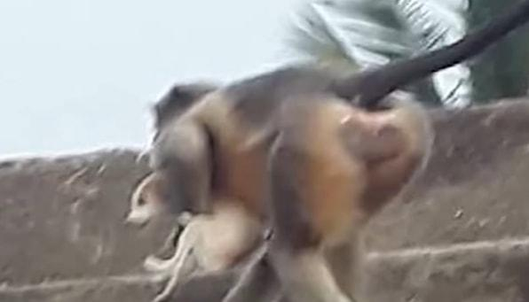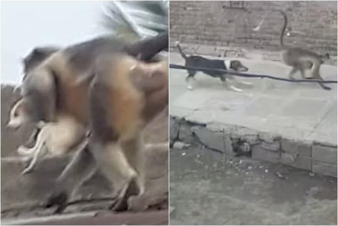 报道指出,印度媒体的图片似乎证实了这些攻击。在其中一张图片中,可以看到一只猴子在屋顶上抱着一只小狗走到一栋大楼的边缘。