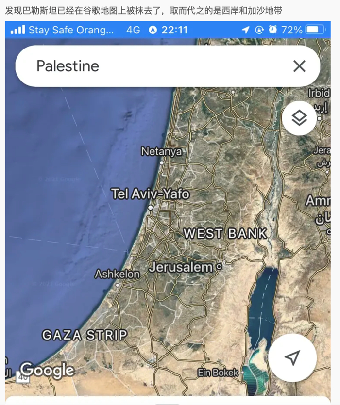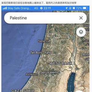 “巴勒斯坦”在谷歌地图上被抹去?