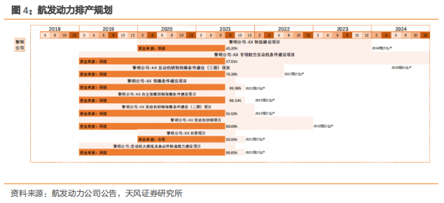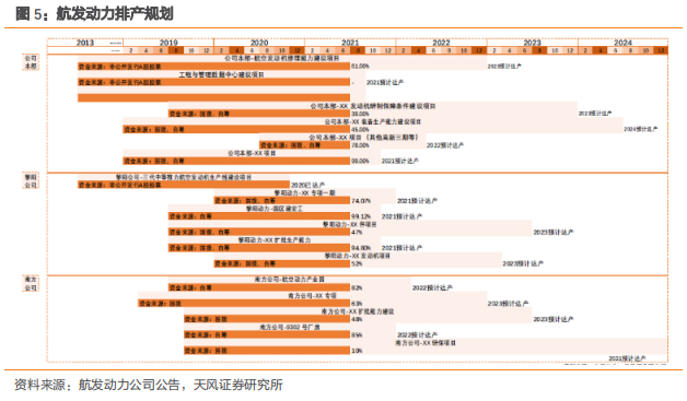 在建项目中,黎明公司中报披露的9个项目中的7项已接近完工状态,我们预计于2021-2022年进入达产状态。黎阳公司5个在建项目均于2023年前进入达产状态。另外,公司本部累计建设十年的航空发动机修理能力建设项目、南方公司的扩大批产能力建设项目均预计于2023年进入完工达产状态。