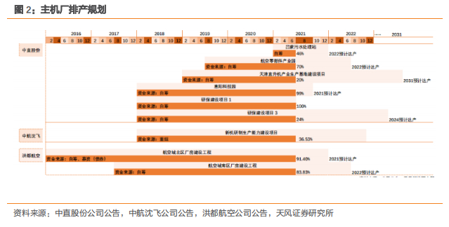 为应对成熟机型的扩产和在研机型的批量导入,航空主机单位于2018年纷纷开始产能扩建工作: