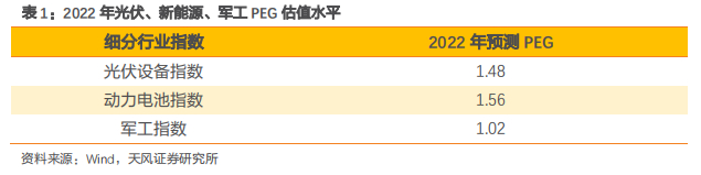 因此军工行业具备估值中枢维持或提升下的长期持续增长,是标准的长坡厚雪型赛道,因此我们认为同样兼顾增长持续度、国家长期战略匹配度、预期稳定正向扩张等特点的可比方向为同是先进制造业的新能源赛道,如锂电、光伏等方向。