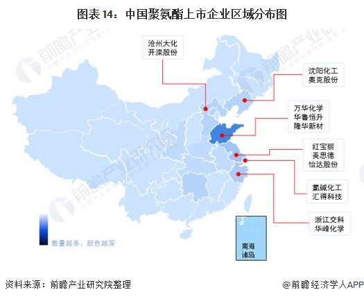从我国聚氨酯企业分布来看,主要集中在河北、山东地区。聚氨酯上市企业主要集中在山东地区。