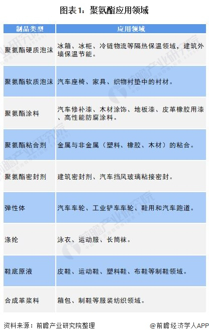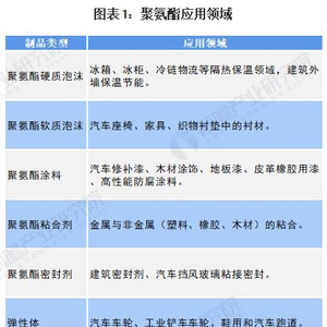 近年来,随着聚氨酯研发水平的提高,聚氨酯产品的应用领域不断得到拓展。目前发达国家已经逐步推广聚氨酯的应用,而我国正在大力研发的聚氨酯产品包括:高铁、地铁、城市轨道交通和公路用减震防噪聚氨酯弹性体;新能源用新型聚氨酯薄膜新材料;浇注型混凝土聚氨酯复合材料和热塑性聚氨酯涂覆织物制品等。聚氨酯下游具体应用领域如下: