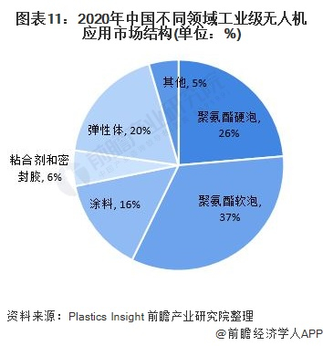 从聚氨酯消费结构上看,2020年,我国聚氨酯制品消费最多的是聚氨酯软泡、聚氨酯硬泡和弹性体,分别占聚氨酯制品消费总量的37%、26%、20%。