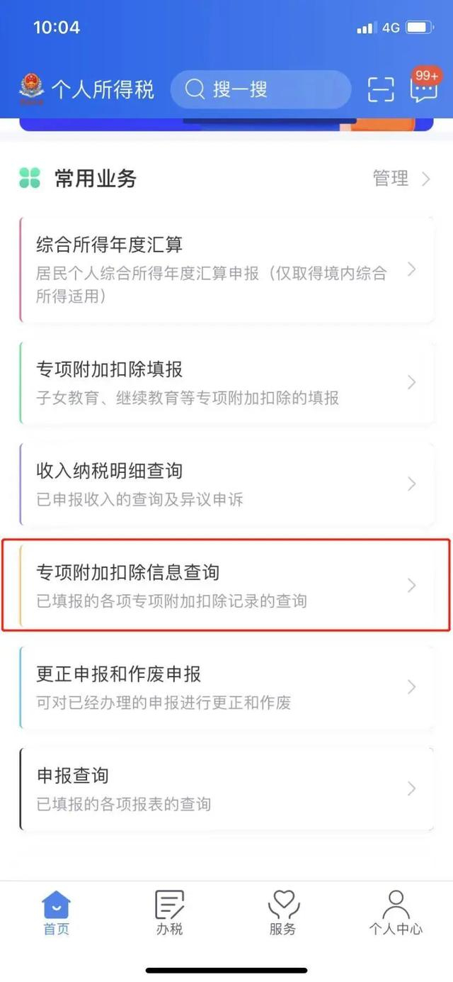 登录“个人所得税”APP,在【首页】中找到【常用业务】下的【专项附加扣除信息查询】,点击后选择【年份】,找到您之前已经填写好的专项附加扣除信息。