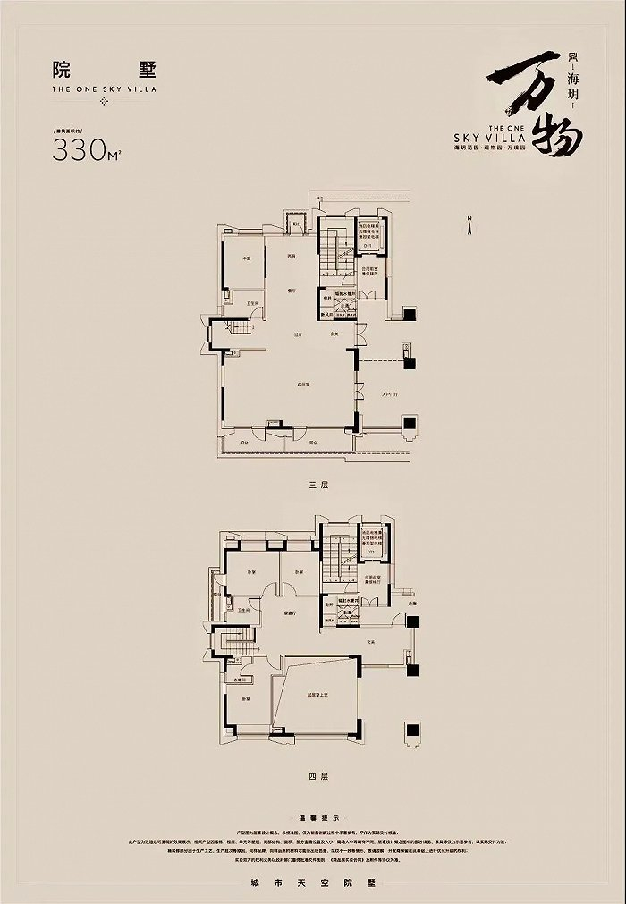 330㎡的复式产品,平层一梯一户,也有两种。其中,3、6、8#号楼为330㎡复式两层,4房3厅3卫;4#号楼为300㎡复式两层,与330㎡有所不同。