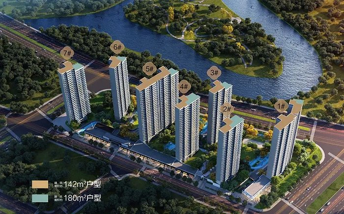 根据规划,项目建8栋8-11F小高层住宅,一梯两户,建面约130㎡(三房两厅两卫)、143㎡(四房两厅两卫),带精装销售,由金科、弘阳、联发共同开发。