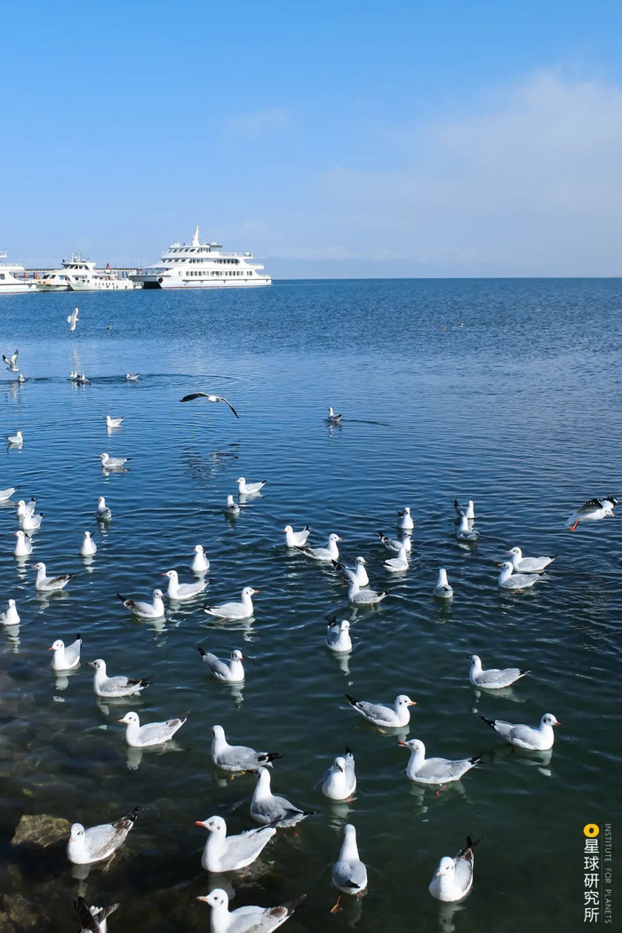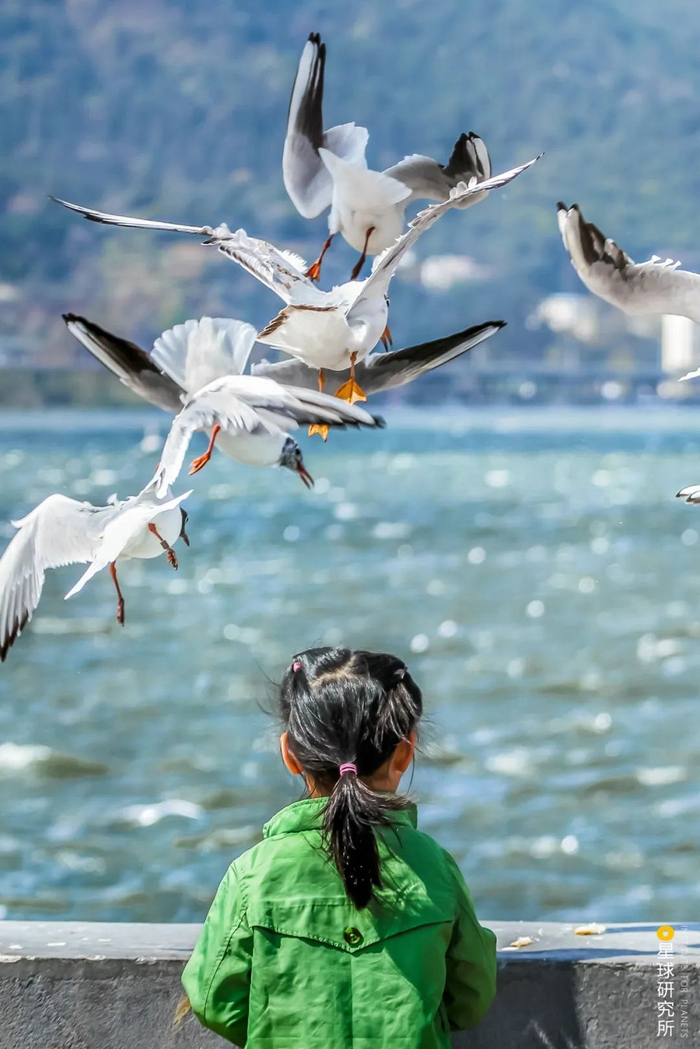 (昆明滇池的越冬红嘴鸥与人,摄影师@卢文)