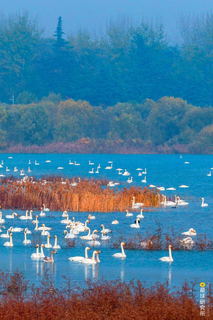 (鄱阳湖的天鹅与白鹤,摄影师@张春晓)