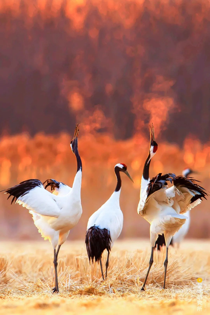 (请观看仙美大鸟;从上往下依次是丹顶鹤Grus japonensis、白鹤Leucogeranus leucogeranus、东方白鹳Ciconia boyciana、黑脸琵鹭Platalea minor,摄影师@孙华金、张春晓、朱润禄、孙华金)
