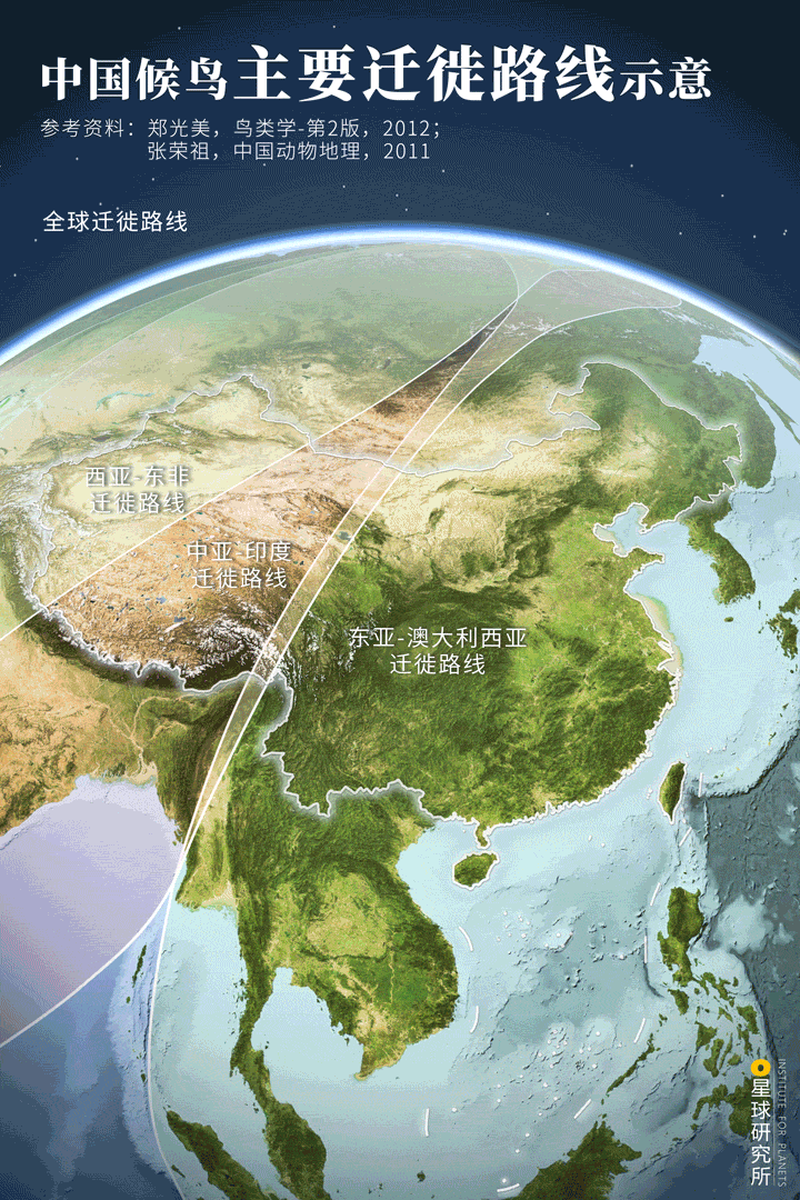 (中国地区的候鸟迁徙路线示意,制图@陈志浩/星球研究所)
