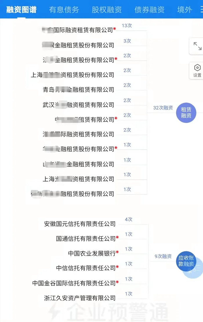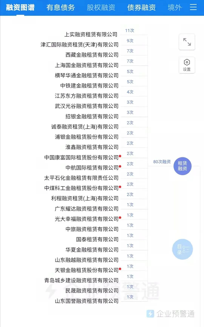11月底商票持续逾期的国骏建投,它父辈是潍坊的峡山绿科,预警通上非标融资数十次。它爷辈是今年受“一女两嫁”案波及的潍坊水务,租赁公司融资高达80次,齐聚近30家同业租赁公司,人气够旺!