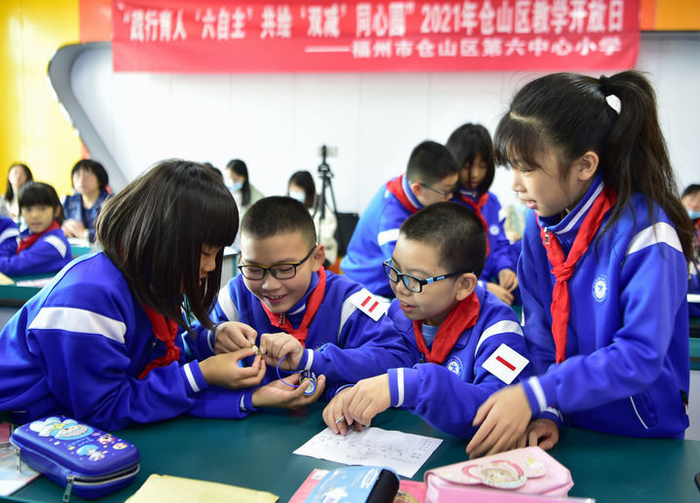 福州仓山举行教育教学开放日活动,展示落实“双减”政策以来的教育教学成果。(新华社照片)