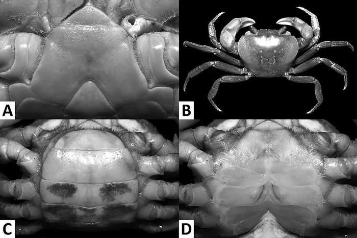 A,澳门南海溪蟹雄性模式标本,编号SYSBM 001649,B~D,澳门南海溪蟹雌性模式标本,编号SYSBM 001650 | Huang C et al. / ZooKeys (2018)