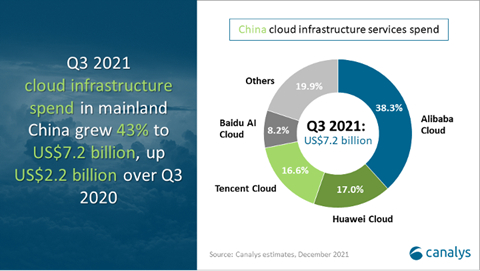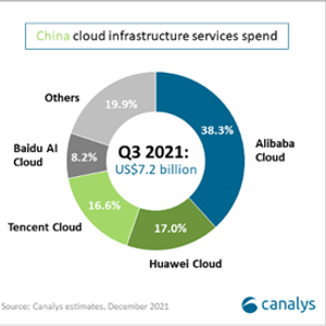 12月9日,Canalys发布中国云计算市场2021年第三季度报告显示,阿里云、华为云、腾讯云和百度智能云形成的“中国市场四朵云”继续保持主导地位。其中,百度智能云同比增速最快,市场份额稳步上升,成为年内唯一实现连续正增长的云厂商。