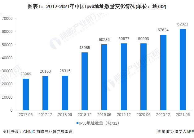 根据CNNIC的数据,截至2021年6月,我国IPv6地址数量为62023块/32,较2020年12月增长7.6%。CNNIC监测范围内的全球知名度较高的23家公共递归服务器厂商中,有12家提供IPv6公共递归服务。