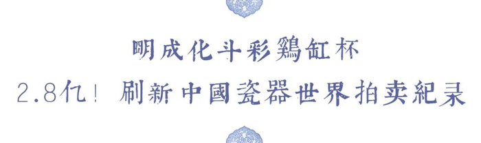 有人会立马想到曾拍出2.8亿、世界声名显赫的宫廷瓷器——明代成化斗彩鸡缸杯。
