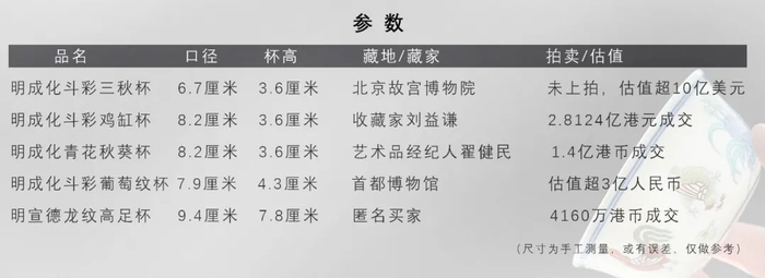 而价格最高者是2013年在香港苏富比拍出的成化青花秋葵杯,也来自英国肯里夫勋爵旧藏。