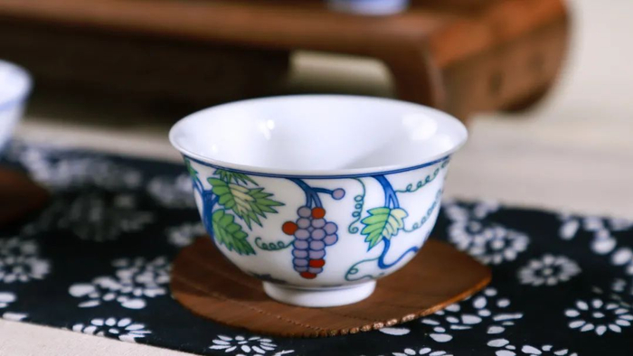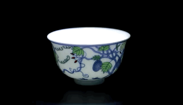 这种斗彩葡萄纹杯,受到皇宫中皇家的使用和喜爱,并且一直传承下来。