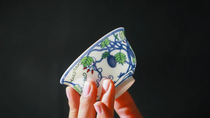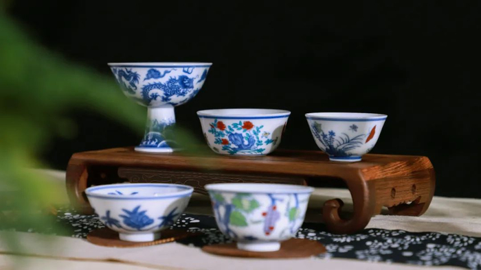如今,由景德镇御器研究院和有个宫匠联合出品,推出了1:1原杯仿古复烧的这套久远且传奇的《皇家斗彩青花拾亿杯》。