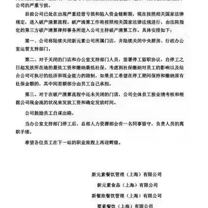 中新网消息,近日,一则落款为“新元素餐饮管理(上海)有限公司”等系列公司的破产通知在网上流传,宣告这一曾被标榜为轻食“网红”的连锁餐厅即将迎来终结。