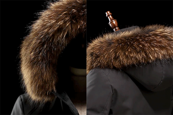 毛领绒毛细长丰满,保暖性强,蓬松毛茸茸的毛领,拍照的时候也是很好看的摆拍道具。