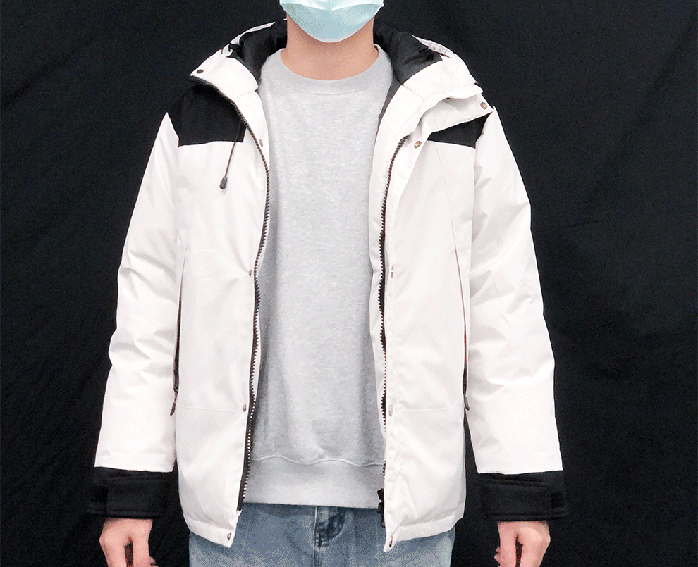 就这样在室内溜达了1个多小时,再拉开拉链测试羽绒服内部温感,身上都是暖烘烘的。