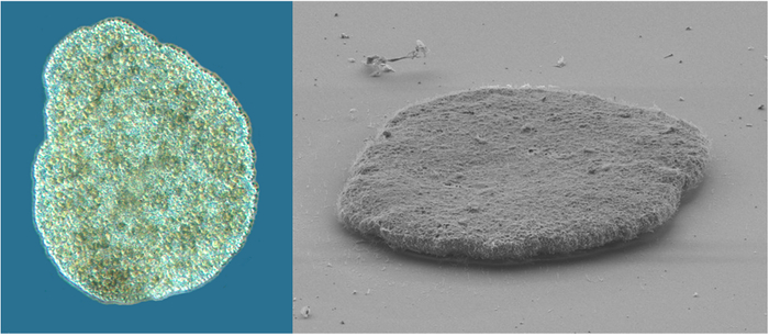 如此一来,要搞清楚睡眠的本质,就得要研究更原始的、连肠道都没有的物种了。Raizen决定研究扁盘动物(placozoan)——一类芝麻粒大小、又圆又扁的透明生物,只有两层细胞,两面都有纤毛。扁盘动物没有神经细胞,细胞间通过化学信号沟通以协调纤毛的运动。可以说,除了某些寄生物,扁盘动物就是地球上最简单的动物了。