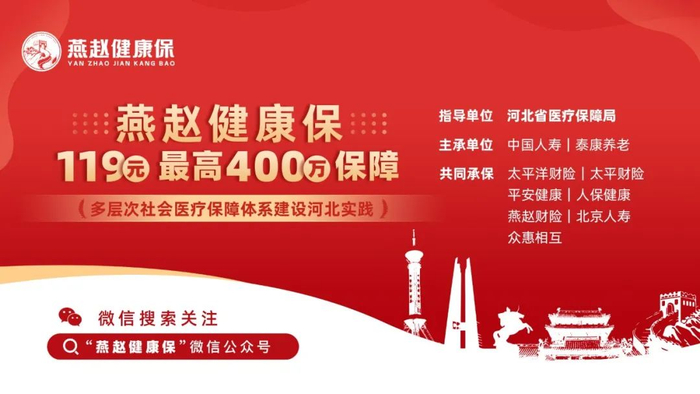 “燕赵健康保”正式发布!河北专属补充医保!119元/年,最高保障400万