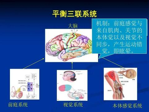 人体的平衡是由三个系统共同协作来完成的,即:前庭系统、视觉系统和本体系统。
