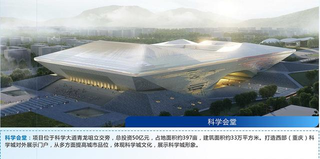 项目位于科学大道青龙咀立交旁,总投资50亿元,占地面积约397亩,建筑面积约33万平方米。打造西部(重庆)科学城对外展示门户,从多方面提高城市品位,体现科学城文化,展示科学城形象。