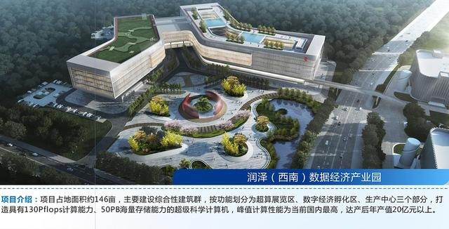 项目占地面积约146亩,主要建设综合性建筑群,按功能划分为超算展览区、数字经济孵化区、生产中心三个部分。