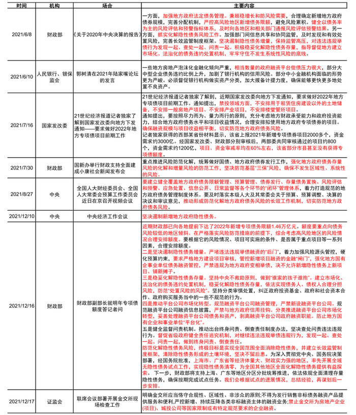 本文摘自:2021年12月22日已经发布的《控隐债、防风险下的分类监管新时期——2021年以来地方政府债务和城投监管政策梳理》