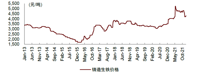 3、  原材料价格居高不下。从2020年下半年开始,风电上游的原材料价格开启一轮上涨,目前仍然高于过去几年的均值,对产业链各环节都有一定的盈利压力。