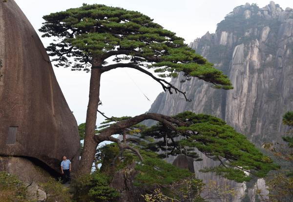 天宝十四年(755),李白过龙门到陵阳,从仙源上黄山。其时有崔县令、王十二处士等陪同前往。李白对黄山十分钟爱,写了好几首诗赞美其壮美的风光。他在《送温处士归黄山白鹅岭旧居》中写道:“归修白鹅岭,渴饮丹砂井。”白鹅岭位于黄山东海,海拔1800米,峭壁千丈,高不可攀,峰上古松苍郁,巨石磊磊。李白这首诗赞美了黄山的险峻奇美——四千仞高的黄山,它那三十二座莲峰,在阳光下如同一朵朵金光璀璨的芙蓉花。悬崖深谷,丹崖夹着石柱。当你登临绝顶,云海在脚下翻腾,极目远望,可以看到天目山的松树,而且有一种“乘桥蹑彩虹”飘飘欲仙的感觉。