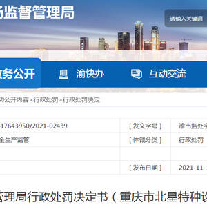 中国质量新闻网讯 日前,重庆市市场监督管理局公布对重庆市北星特种设备检验检测有限公司的行政处罚决定书。具体情况如下: