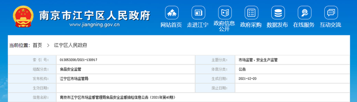 | 江宁区食品抽样检测产品信息公示名册(2021年第40期) | ||||||||||