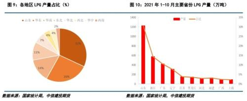 分时间来看,2021年LPG需求呈现出先增后减的特征,1-6月LPG表观消费量同比、环比都出现明显的增长,7-10月表观需求量同比出现增长但环比出现减少。和2021年LPG价格“淡季不淡”走势相对应,2021年LPG表观需求在往年的需求淡季6-8月表现较好,对价格形成了明显的支撑。但由于旺季需求表现不及预期,表观需求环比下降,10月后LPG期现价格出现了明显的下跌。