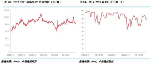 行情回顾:2021年LPG期现价格中枢上移,价格波动剧烈。期货价格整体呈现先抑后扬的走势,价格运行大致分为三个阶段:1月价格下跌,2-9月价格大幅上涨,10-12月价格快速下跌;期货价格高点为6836元/吨,价格低点为3253元/吨。现货价格与期货价格走势接近,但波动幅度较期货盘面更小,价格高点和低点滞后于期货价格的高点和低点。整体来看,2021年LPG价格主要受到成本端和下游PDH装置投产进度影响,价格的季节性特征弱化。