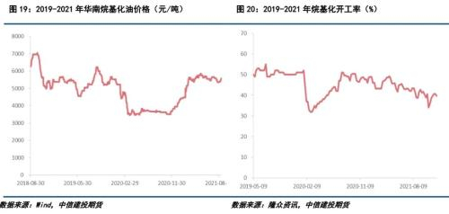 从炼厂库存率看,2021年炼厂库存率变动不大,整体维持在30-60%区间。截止到2021年12月初,以浙江样本衡量的华东炼厂库存率为55%,以广东样本衡量的华南炼厂库存率为41%,都接近去年同期水平。进一步分析,华南地区的炼厂库存率低于华东地区的炼厂库存率;2021年炼厂整体的库存率略低于2020年同期,库存率高点出现在七月份,低点出现在九月份。预计2022年炼厂库存率变动仍然较小,整体维持在30-60%区间。