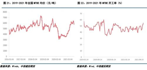 除PDH装置投产的利好外,2021年LPG下游的烷基化和MTBE表现也较好,原油价格上涨带动汽油价格上行,烷基化油和MTBE价格也明显高于2020年同期,生产利润也好于2020年同期水平。据隆众资讯统计,2021年国内烷基化的平均生产利润为431.93元/吨,MTBE的平均生产利润为183.78元/吨,都明显高于2020年同期水平。由于利润的改善,2021年烷基化和MTBE的开工率高于2020年同期水平,带动LPG需求量增加。