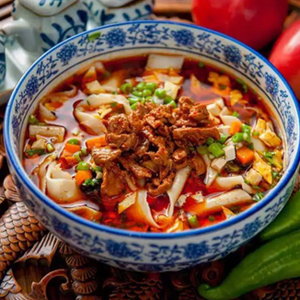 酸辣可口的“臊子面”便是西安城市名片中的最具特点的传统美食代表之一。其品种便多达数十种,一般在陕西关中平原及甘肃陇东等地方流行,尤其在关中地区有其非常重要的地位,传统节日、婚丧、孩子满月、老人过寿、款待亲朋等重要场合都离不开臊子面。