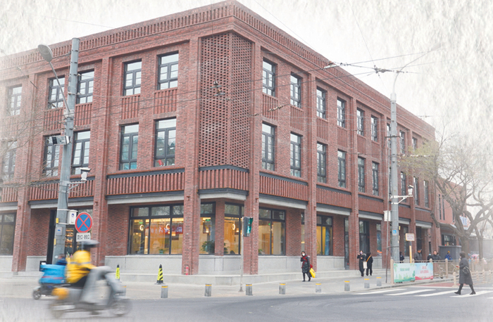 踏入西安门大街的一刻,西四路口的红楼公共藏书楼率先映入眼帘。红砖外立面正应“红楼”二字,细看砖面,1949年新中国成立后各个时期的口号、标语依稀可见。