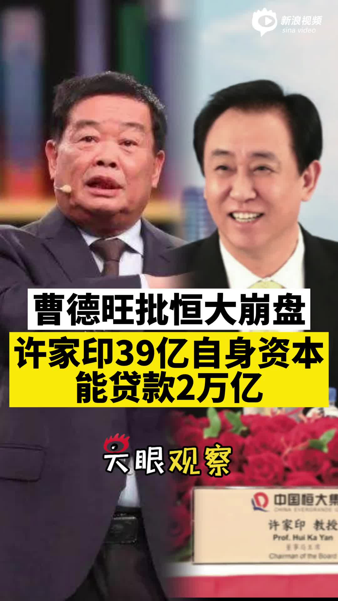视频丨曹德旺批恒大崩盘曹德旺:“许家印39亿的资本,贷款却做到了2万亿”